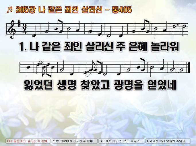 새찬송가 305장 나 같은 죄인 살리신 통합찬송가 405장 Nwc Ppt악보