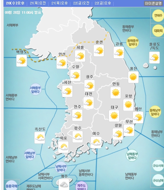 내일날씨 서울 26도 대구 27도 일교차 커 제주 오전 빗방울 미세먼지 양호