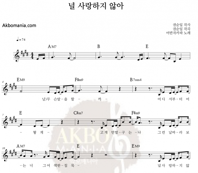 널 사랑하지 않아 악보