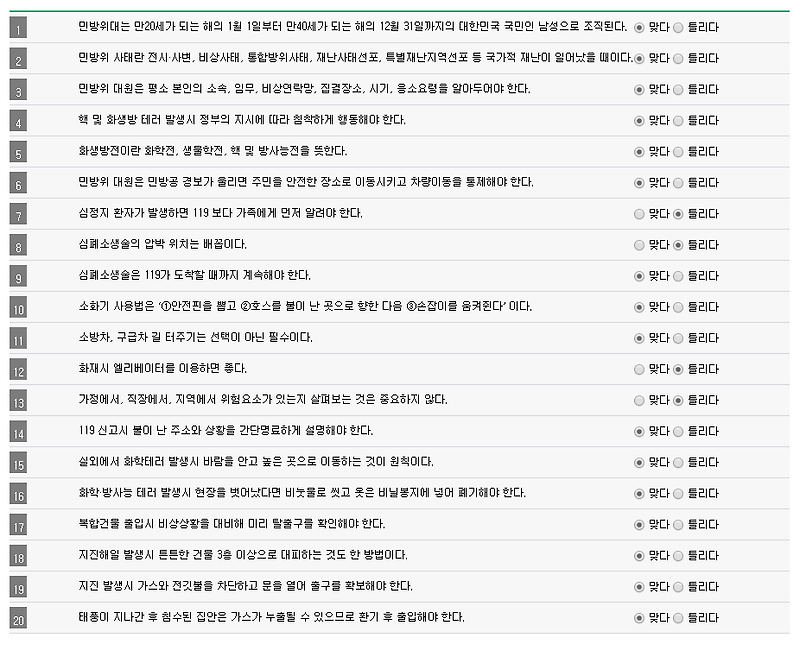 2020 스마트민방위교육 평가 답안