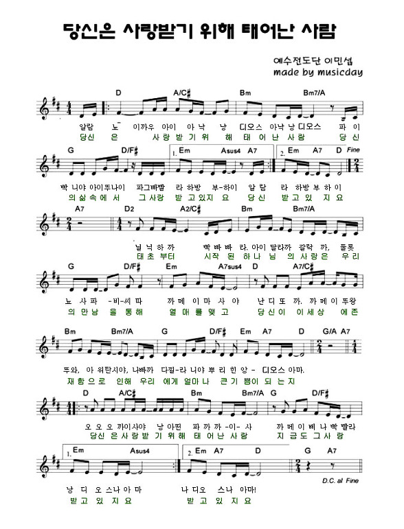 악보통 당신은 사랑 받기 위해 태어난 사람