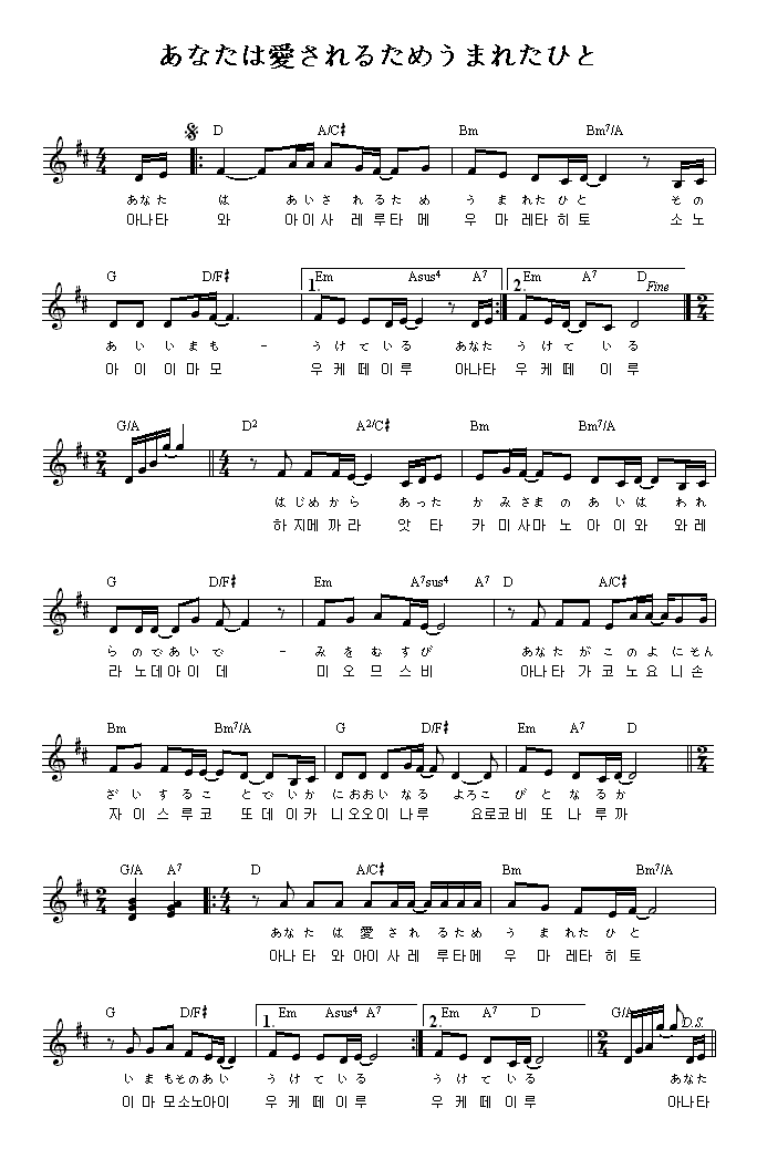 당신은사랑받기위해태어난사람 악보 계이름 영어 가사 일본어 독어 네이버 블로그