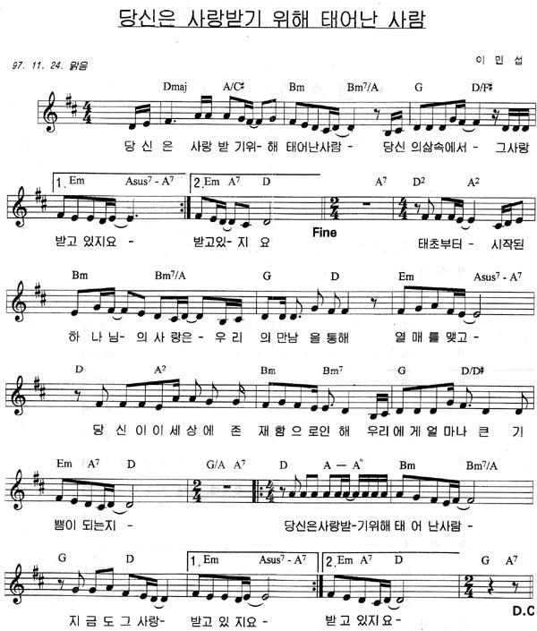 Ccm 악보전문 악보엘 당신은 사랑 받기 위해 태어난 사람