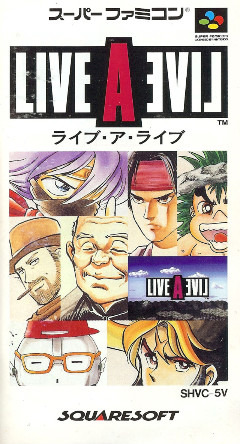라이브 어 라이브 ライブ ア ライブ live a live 는 스퀘어가 제작한 롤플레잉 비디오 게임이다. 1994년에 슈퍼 패미컴으로 일본에서만 출시됐으며 버추얼 콘솔로 wii u와 닌텐도 3ds로도 나왔다. 데이트 어 라이브 코믹스판 월간 소년 에이스에서 연재. 라이브 어 라이브의 스토리는 원시편 서부편 쿵후편 막말편 현대편 근미래편 sf편의 7가지 기본 스토리가 존재하며 7개의 스토리를 전부 클리어하면 중세편 더불어 중세편을 클리어하면 8가지 스토리의 주인공들이 한 자리에 모여 활약하는 최종편이 발생한다.