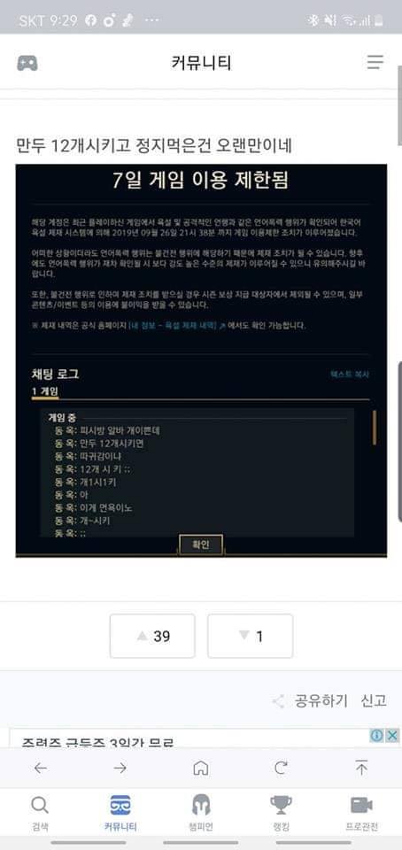 롤 이게 왜 정지냐 라이엇 미쳤냐 리그오브레전드 올타임레전드 개념글저장소