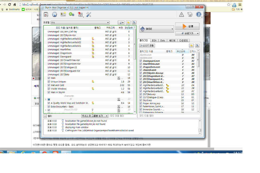모드 오거나이저 우선순위 오류 질문입니다 엘더스크롤 5 스카이림 루리웹