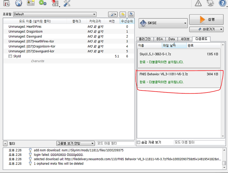스카이림 Fnis 사용법 모드 오거나이저 Mod Organizer
