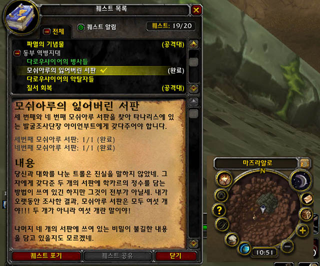G Stories 와우클래식 퀘스트 모쉬아루의 잃어버린 서판 3번째 4번째 위치 학카르 연결 퀘스트 타나리스 항구