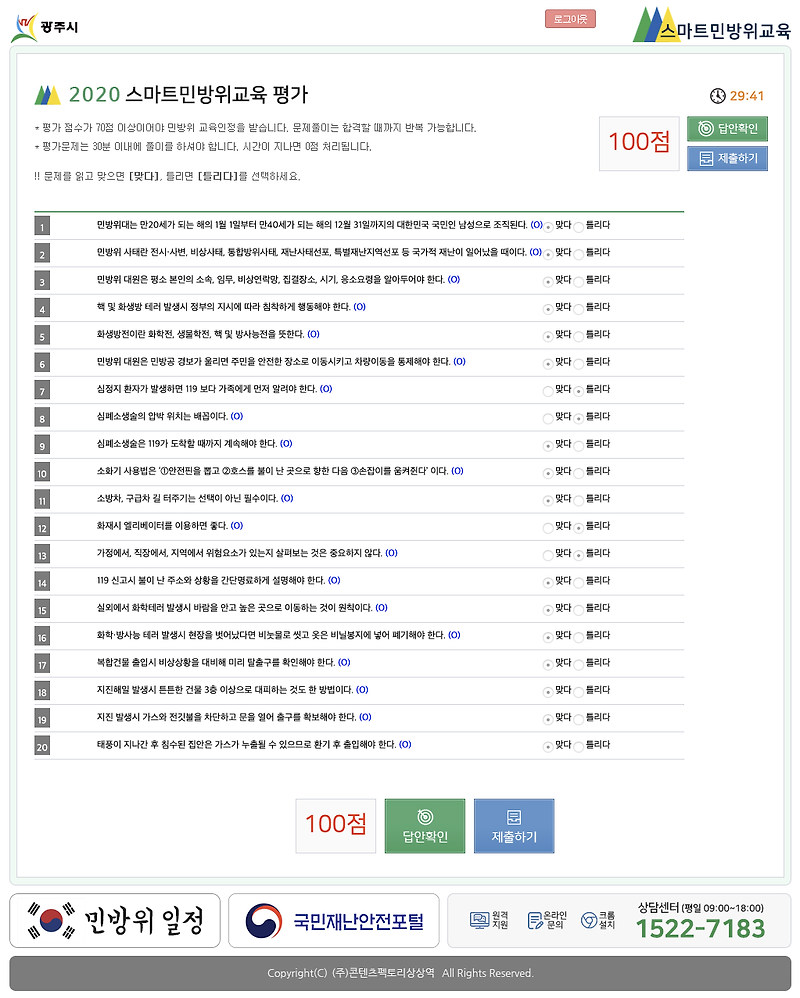 2020 민방위교육훈련 스마트 민방위교육 방법 및 평가 정답 네이버 블로그