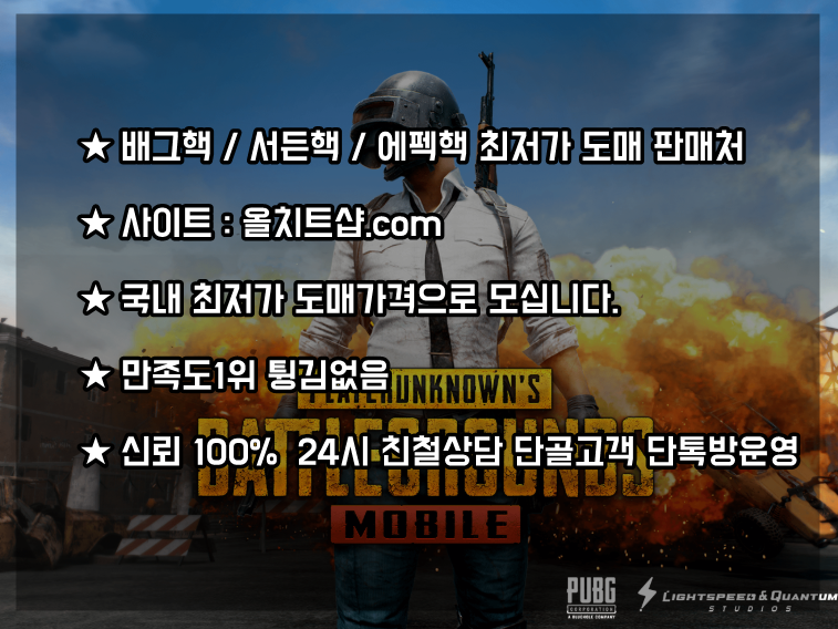 지금까지 사용하면서 정지 당한적이 없습니다. 현재 배틀그라운드 핵을 판매중이며 배틀아이에 절대 감지되지 않습니다. 반말ㅈㅅ몇달간 배린이짓하다가 하도 억울해서 핵 한번 써보자 해서 구글검색해서 샀다판매자 카톡 프로필 이름 pro shop 24 고 프로필 이미지에 엔코 라고 써있음사용법은 간단함게임내에서 메뉴띄워서 적위치 색 같은거 선택할수 있고 적 위치 다 보임에임핵도 같이 있는데 이건 사실 별로. 0 comments 로그인한 회원만 댓글 등록이 가능합니다.
