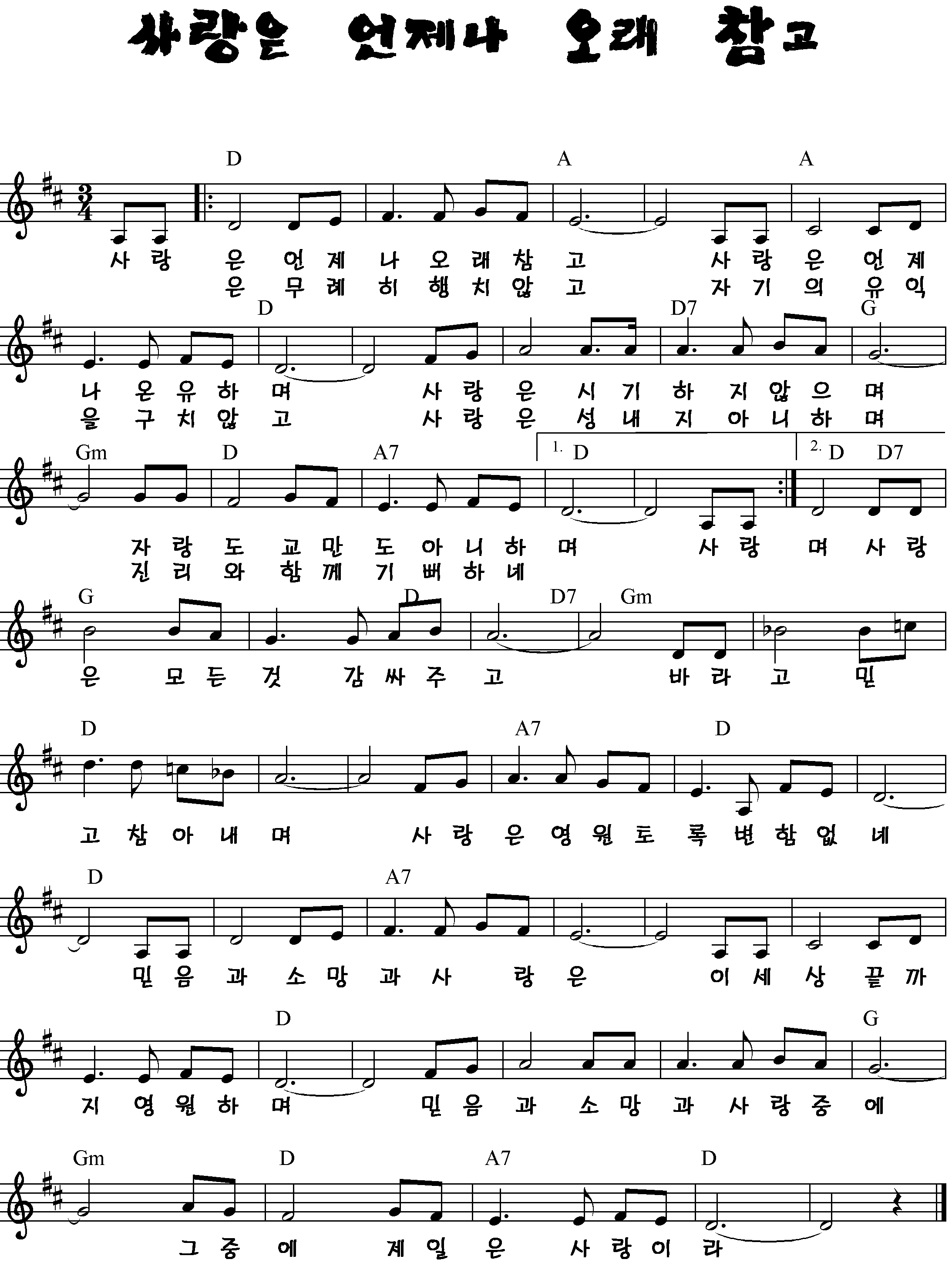Musicday 사랑 사랑은 언제나 오래 참고 Best Gospel 큰글자악보