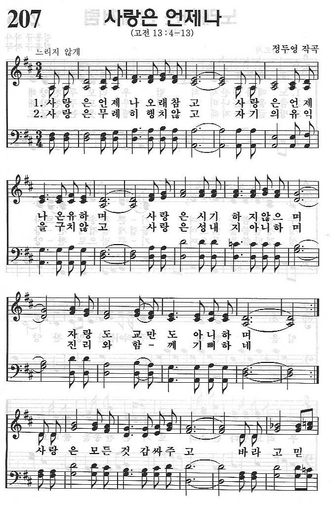 0895 사랑은 언제나 오래 참고 임마누엘 자매들 복음찬송가 악보 보기 곡 검색 복음찬송가