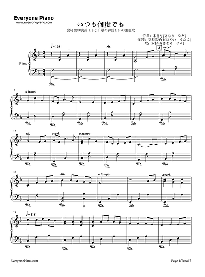 악보 게시판 센과 치히로의 행방불명 Ost いのちの名前 생명의 이름 쉬운 악보 By Hishine