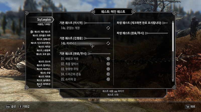 Skycomplete 1 45 퀘스트 진행상태 표시 모드 스카이림 번역보관소