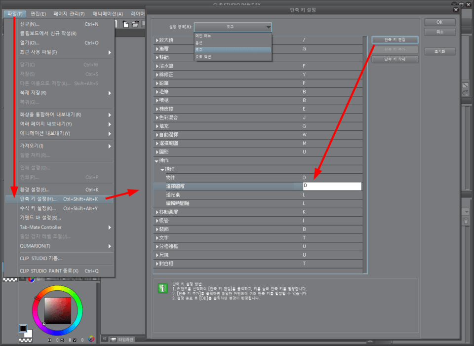 레이어 선택 단축키 변경 어디서 할 수 있나요 Clip Studio Ask