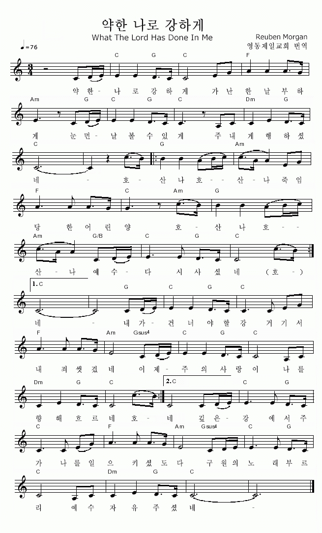 약한 나로 강하게 마커스 듣기 악보 가사 C 코드 Worship