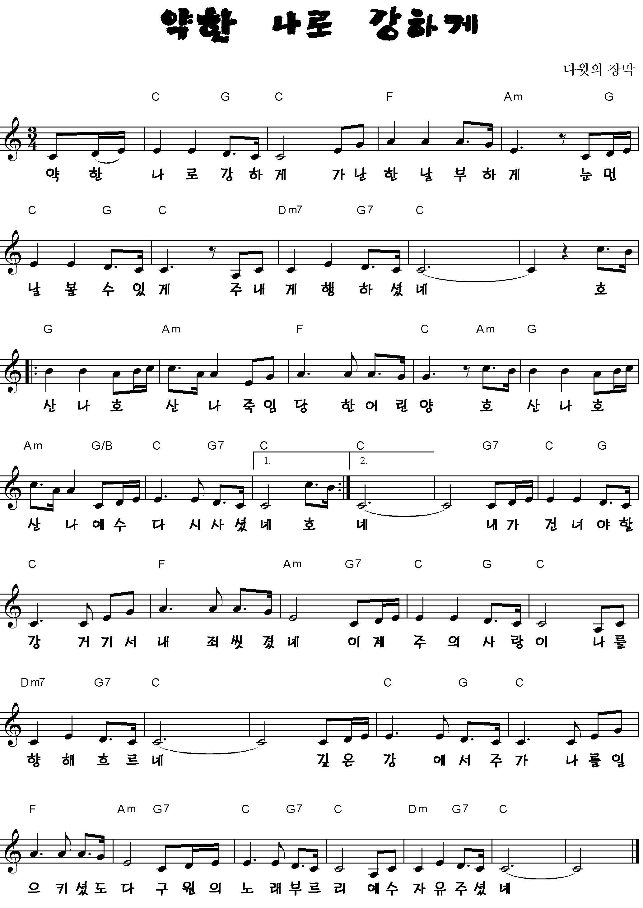 복음송가 복음성가 Ccm 약한 나로 강하게 가사 악보 피아노찬양 동영상 네이버 블로그