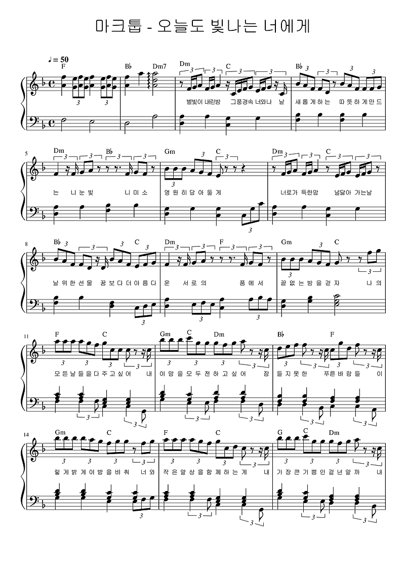 마크툽 오늘도 빛나는 너에게 악보