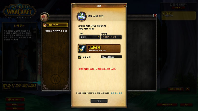 월드오브워크래프트 클래식 유료 서버 이전 시작 네이버 블로그