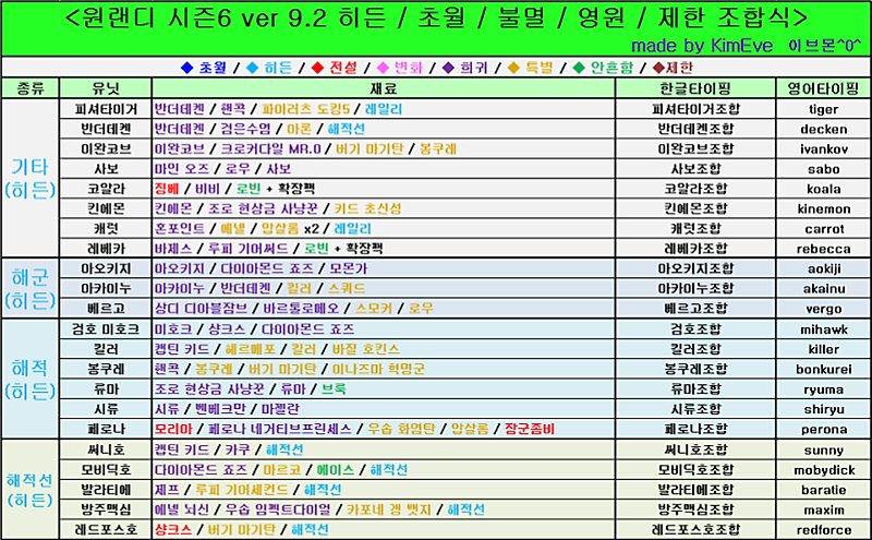 원랜디 8 9 히든조합 및 다운 등 정보모음 By소냉순 네이버 블로그