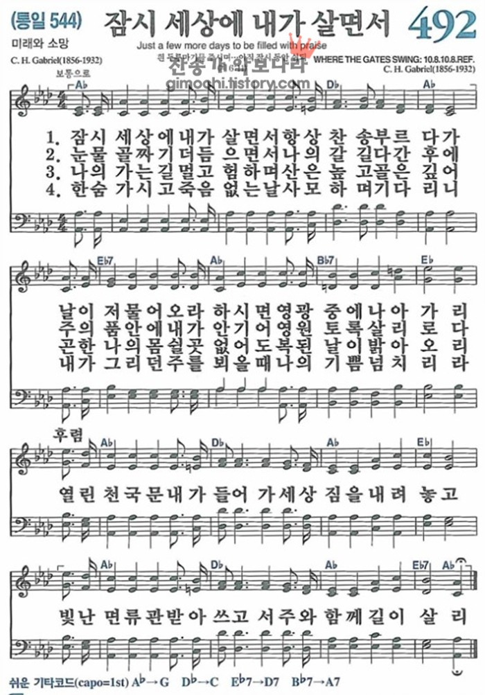 찬송가 새찬송가 492장 잠시 세상에 내가 살면서 Ab G코드 악보 네이버 블로그