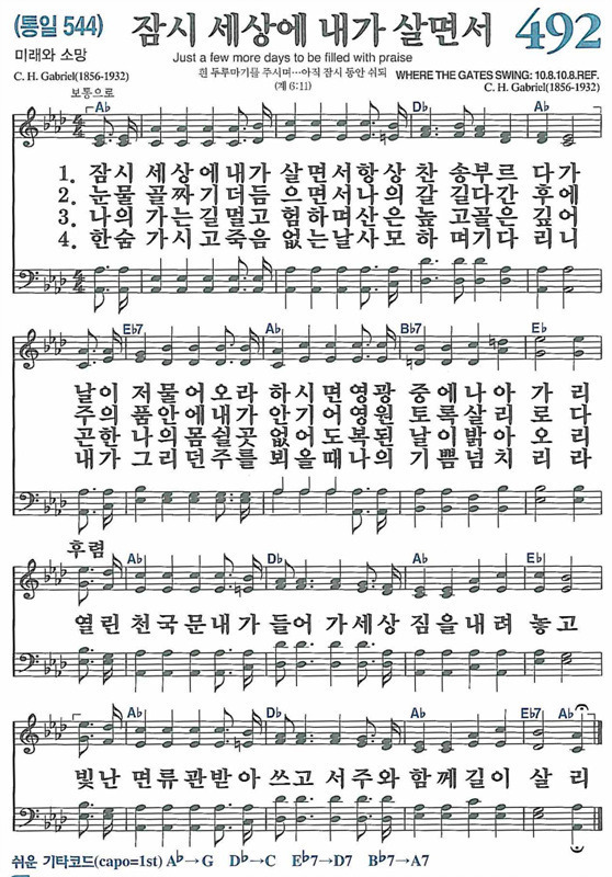 새찬송가 악보 492장 잠시 세상에 내가 살면서