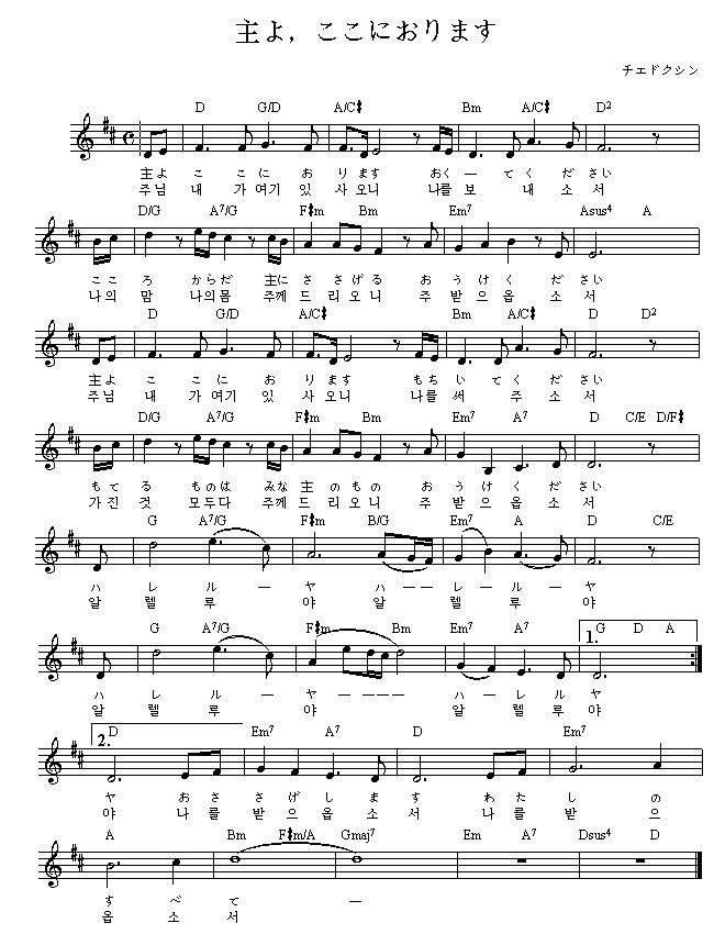 주님 내가 여기 있사오니 나를 받으옵소서 영어 가사 악보