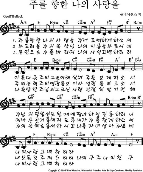 주를 향한 나의 사랑을 찬양 악보 가사