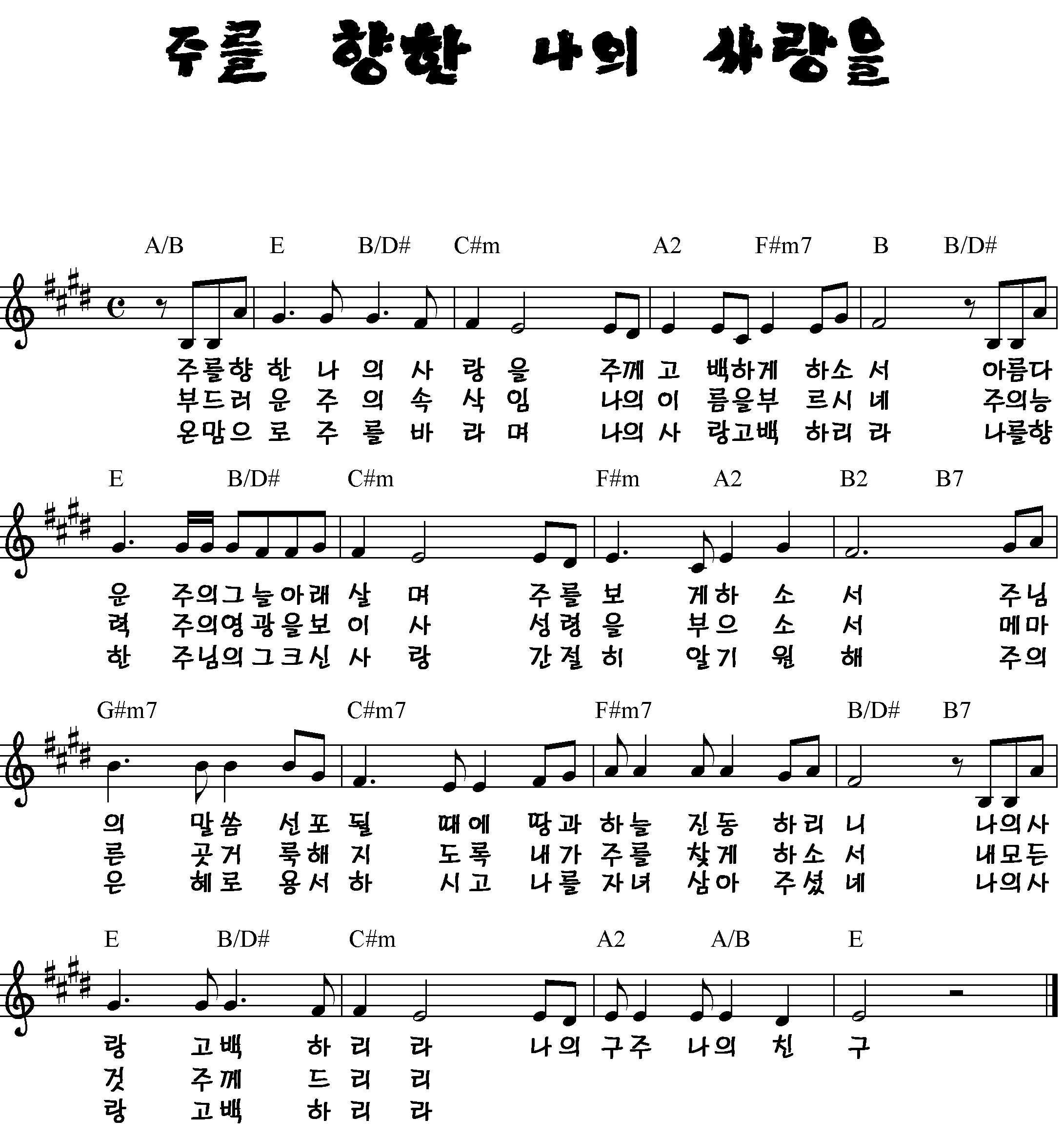 주를 향한 나의 사랑을 E F G Key 악보 네이버 블로그
