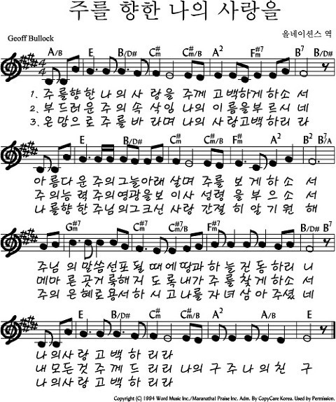 주를 향한 나의 사랑을 E코드 찬양 Ccm 악보 가사 Ppt