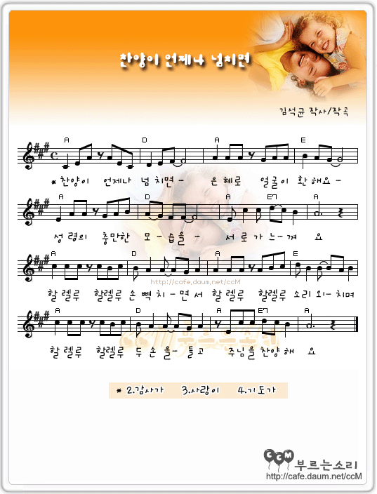 Ccm악보 찬양이 언제나 넘치면 어린이 찬양 A코드 어린이 찬양 김석균 네이버 블로그
