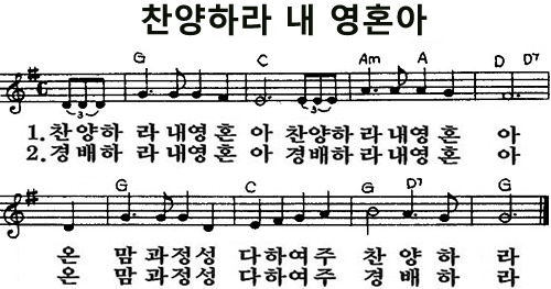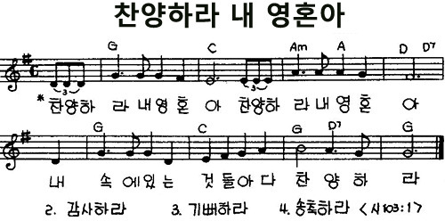 찬양하라 내 영혼아 악보 G코드