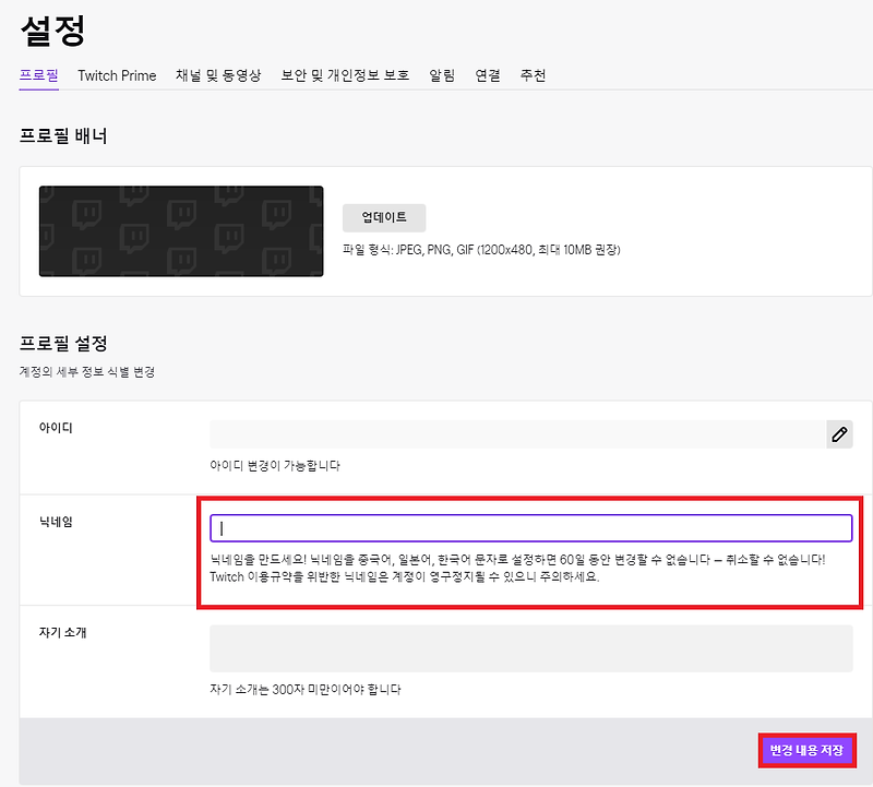 트위치 닉네임 변경 한글 설정 방법과 오류 해결 후기