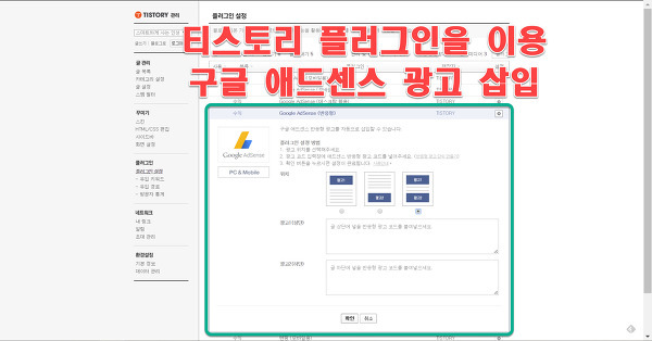 티스토리 플러그인 구글 애드센스 광고 넣기