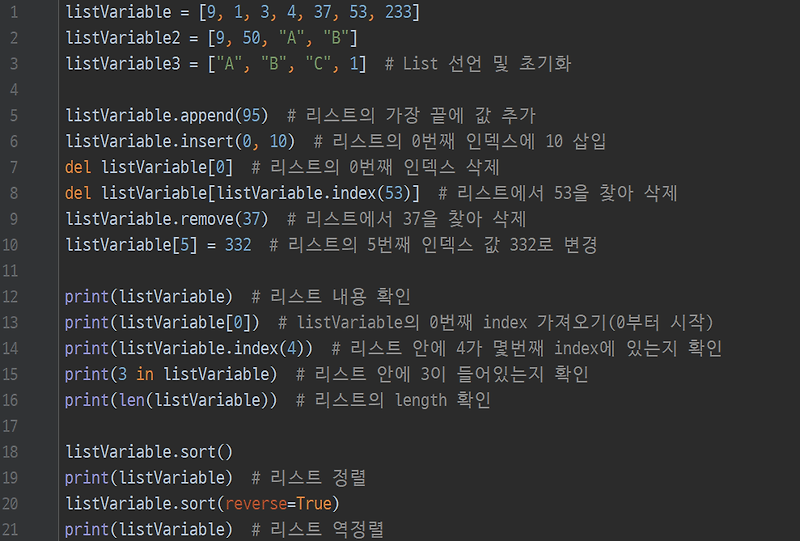 파이썬 List 리스트 사용법 정리 삽입 삭제 정렬