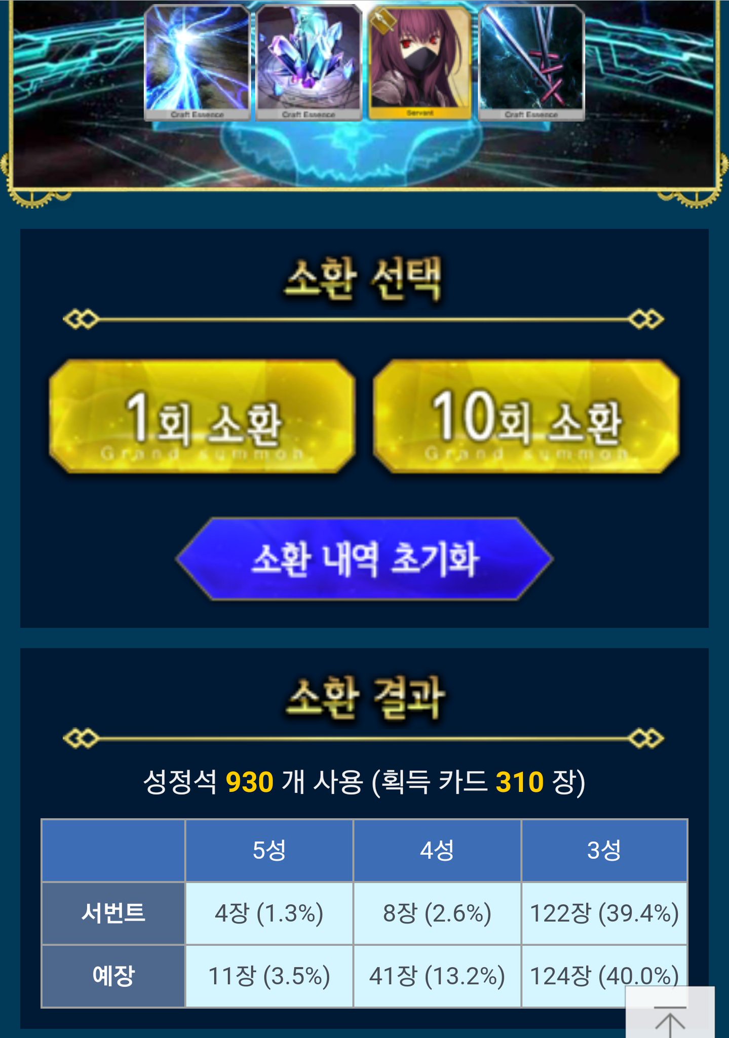페이트 그랜드 오더 스카디 가챠 시뮬레이터 결과