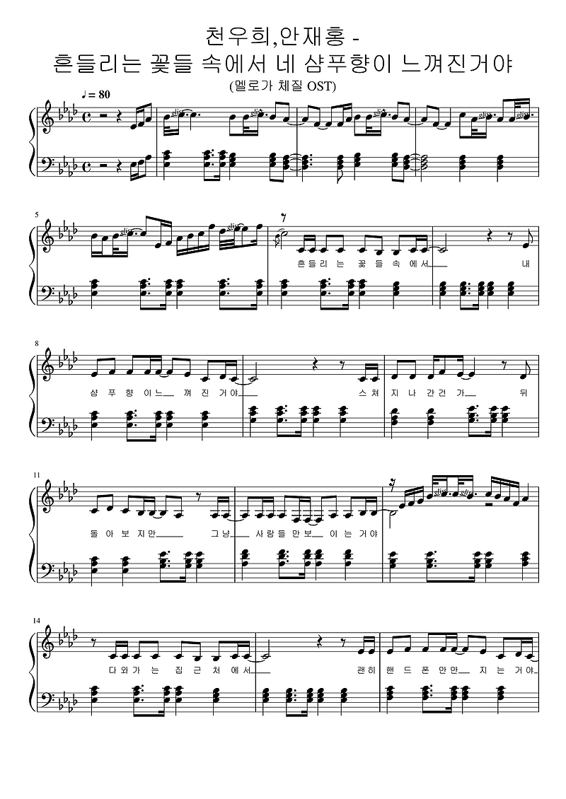 멜로가 체질 Ost 천우희 안재홍 흔들리는 꽃들 속에서 네 샴푸향이 느껴진거야 악보다운